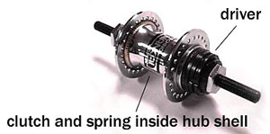 the hub shell. When they come in contact the clutch cone drives the hub and wheel